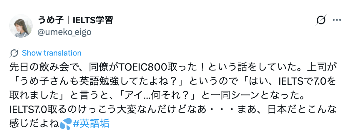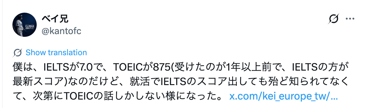 採用担当者がTOEICに慣れている以上、IELTSスコアだけでは伝わりにくい場面があります。